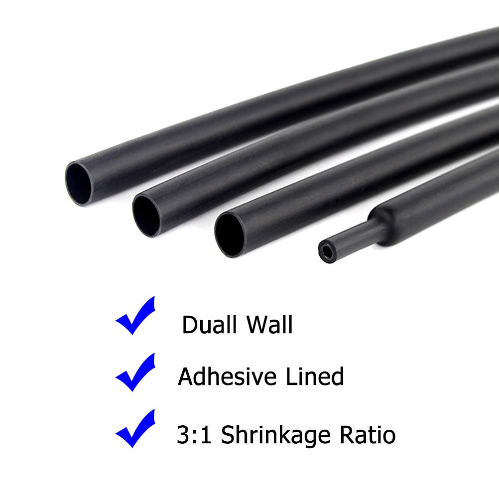 130 pcs Black Dual Wall Heat Shrink Tubing Kit 6 Size Heat Shrink Tubes Wire Wrap Ratio 3:1 Electrical Cable Sleeve Assortment with Storage Case for DIY Long Lasting Insulation Protection